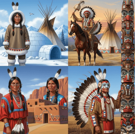 Canto Superior Esquerdo:Povo Inuit, Canto Superior Direito: Sioux. Canto Inferior Esquerdo: povo Hopi, Zuni. Canto Inferior Direito: povo Haida A América do Norte, antes da chegada dos europeus, era habitada por uma vasta e diversa gama de povos indígenas, cada um com suas próprias culturas, línguas, tradições e modos de vida adaptados aos diferentes ecossistemas do continente. […]