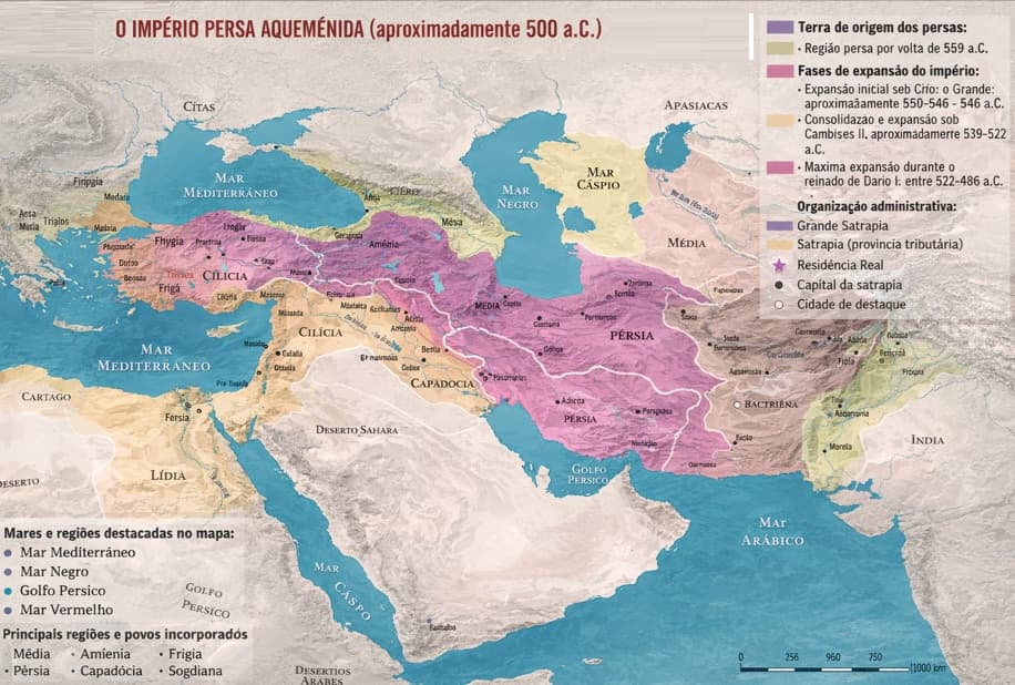 Mapa do Império Aquemenida em sua maxima extensão
