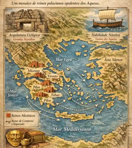 Para entender os filisteus, precisamos olhar para a Grécia Micênica (os Aqueus). Naquela época, a Grécia era um mosaico de reinos palacianos opulentos, conhecidos por sua arquitetura ciclópica e sua habilidade náutica. No entanto, quando o sistema colapsou, a sociedade aqueia sofreu uma fragmentação, ou um “fork” histórico.