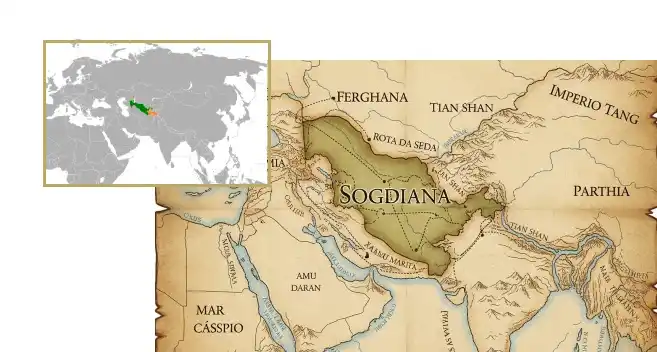 Mapa dos sogdianos, regiao que atualmente faz parte o Uzbequistao e Tajiquistao
