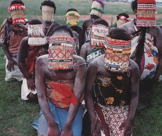 A “Mascara” de Argila: Durante o processo de transição para a vida adulta, as jovens iniciadas (chamadas de bale) cobrem o rosto com uma mistura de argila (geralmente ocre ou cinza) e usam véus feitos de contas ou fibras de capim.