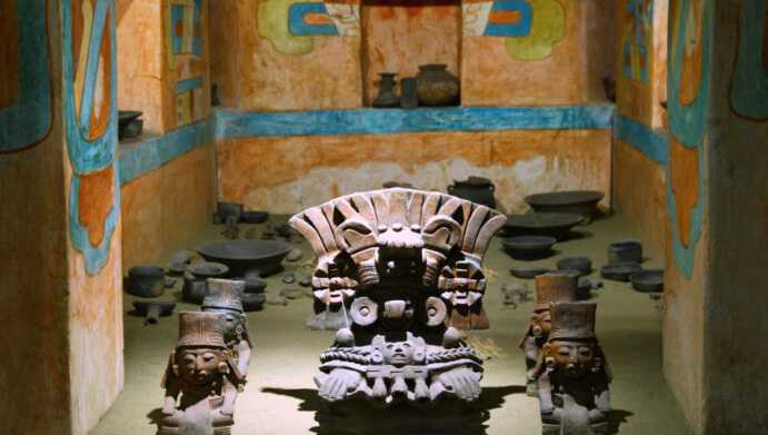 Túmulos Elaborados: A elite zapoteca era enterrada em túmulos subterrâneos ricamente decorados com murais e oferendas, como os famosos encontrados na Tumba 7, repleta de joias de jade, ouro e turquesa.
